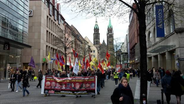 16 Nisan 2016 tarihinde ATiK’in ve Nürnberg ATiK Tutsaklarıyla Dayanışma Komitesinin çağrısı ile devrimci demokrat kurumlar bir araya gelerek geçen sene tutuklanan ATiK aktivistleri hem de son 3 yıllık süre içerisinde Almanya’da faşist TC devletinin hedef göstermesi sonucu tutuklanan devrimci-demokrat siyasi tutsakların serbest bırakılması ve şu anda yürürlükte olan “anti-terör” yasaları diye bilinen 129 a/b yasalarının protestosu için Nürnberg’de bir araya geldi.