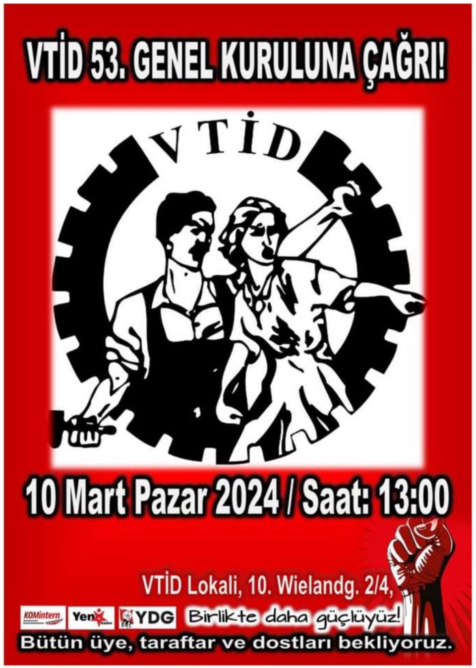 Viyana|06.03.2024| Viyana Türkiyeli İşçiler Derneği 10 Mart’ta yapacağı 53. Genel Kurulu’na çağrıda bulundu. Avusturya’da Türkiye ve Türkiye Kürdistanlıları’nın ilk örgütlenmesi…