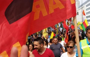 KÖLN |11-08-2015| Türkiye devletinin son dönemlerdeki faşist politikalarına IŞİD barbarlığına dikkat çekmek için 15 binden fazla insan Köln’de buluştu. Önceki Cumartesi Köln Ebertsplatz’da buluşan kitle yapılan miting sonrasında Heumarkt’a kadar yürüdü. Almanya Demokratik Güçbirliği ve ABDEM tarafından yapılan çağrı ile Köln’e akan binlerce insan NO PASARAN! Faşizme ve savaşa geçit vermeyeceğiz! Parolasını haykırdı.