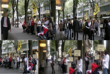 ZÜRİCH | 13 – 06 – 2011 | İsviçre’nin Zürich kentinde 10 Haziran’da DESA işçileriyle dayanışma etkinliği gerçekleştirildi. İTİF’in çağrısıyla biraraya gelen Demokratik Kitle Örgütleri platformu, Prada mağazası önünde, işçilerin hak alma mücadelesini desteklediklerini duyurdular.