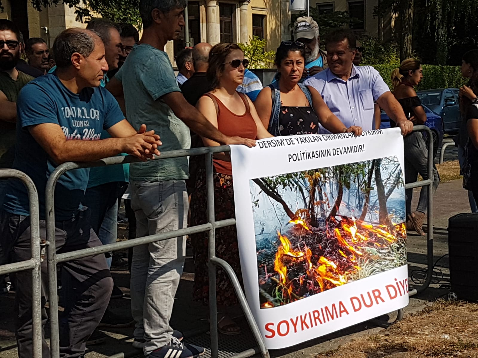 DUISBURG- 25.08.2015 günü seçilmiş bir kaç Duisburg sakini ile sohbet etmeye gelen Almanya başbakanı Merkel , ATİK taraftarları tarafından protesto edildi. Mülteci hakları ve son ATİK´e karşı yapılan saldırılara dair slogan atan kitle, 129 a/b yasalarını teşhir etti.”Tüm politik tutsaklara özgürlük” sloganını haykırdılar.