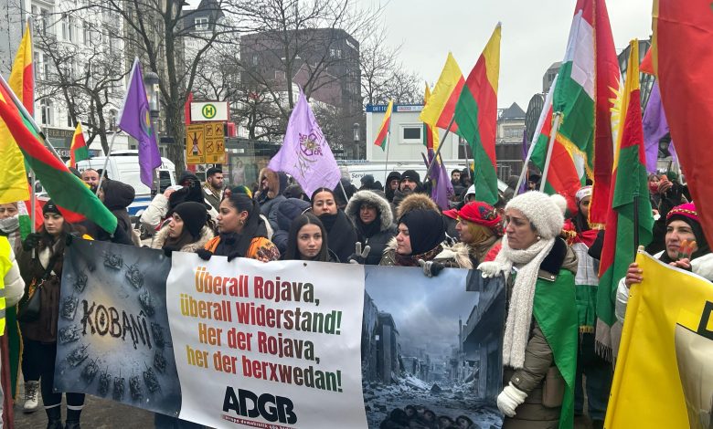 HAMBURG|02.02.2026| 1 Şubat 2026’da Hamburg’da faşist Türk devleti ve HTŞ çetelerinin Rojava’ya yönelik saldırılarına karşı protesto eylemi gerçekleştirildi. Saat 14.00’te Hamburg Merkez Tren Garı Hachmannplatz’ta bir araya gelen kitle yürüyüşe geçti.