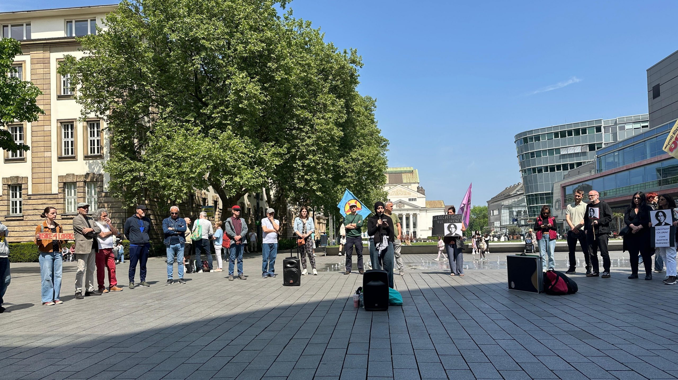Müzik dinlentisinin ardından, yapılan ortak açıklamada 25 Kasım’ın anlam ve öneminin altını çizerek, kadınlar birlikte güçlü olduğu, Almanya’da üç günde bir kadının katledildiği ve kadın dayanışmanın önemine vurgu yapıldı. Yeni Kadın, Asya Yüksel Kadın Derneği, Courage Duisburg, ver.di Sendika Kadınları ve MLPD’li Kadınlar’dan oluşan platform, saat 16:45 de yürüyüşe geçti. Yürüyüş boyunca Jin Jiyan Azadi, Şiddete Karşı Karanlığa Işık Tut, sloganları atılarak Duisburg Theater’in önüde kadar gelindi ve burada kapanış mitingi gerçekleştirildi.