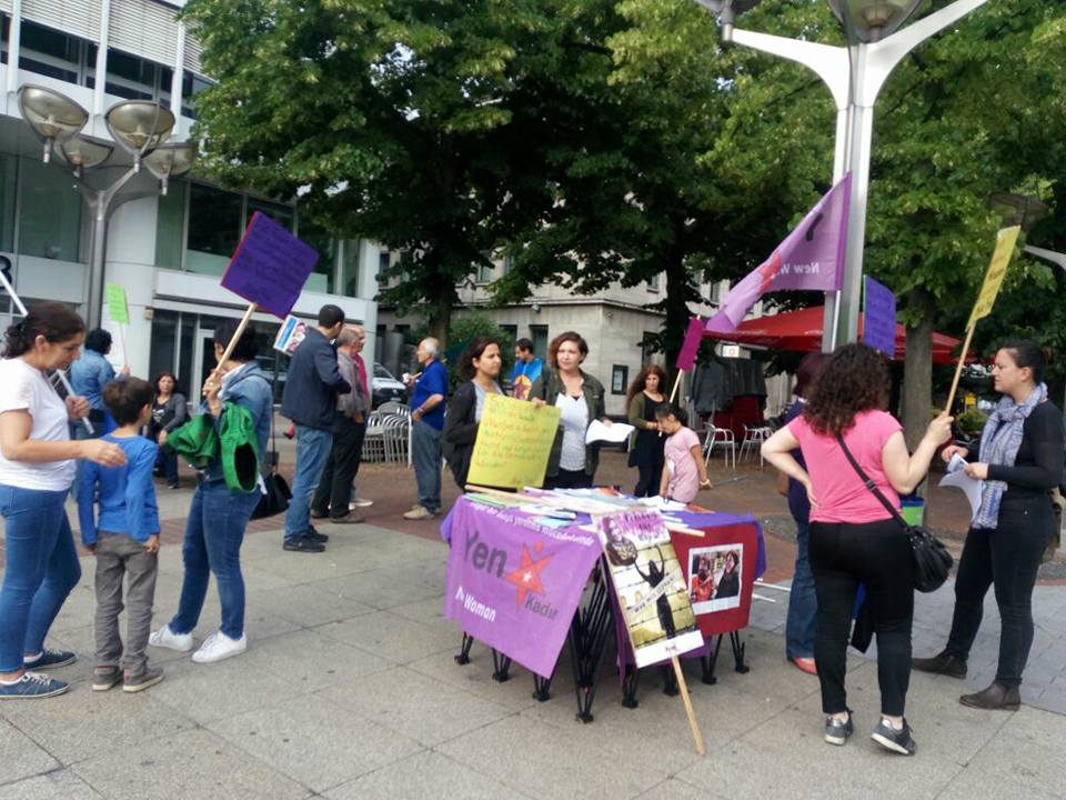 İngiltere Halk Cephesi‘nin çağrısıyla ve Demokratik Güç Birliği – Britanya‘nın katılımıyla yapılan eyleme yaklaşık 2000 kişi katıldı.