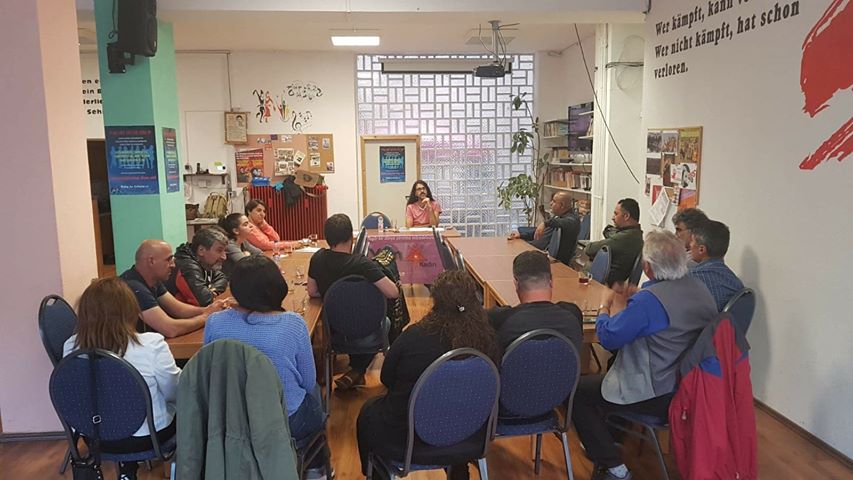 Kadınların tarihler boyu verdiği mücadelelerden anlattığı örneklerle birlikte, bugün 100 lü günleri sürdüren Leyla Güven’in açlık grevinin, Flormar’daki işçi kadınların 297 gün boyunca fabrika kapısı önünde sürdürdükleri direnişin, Türkiye ve içinde yaşadığımız Avrupa coğrafyaları başta olmak üzere dünyanın birçok coğrafyasında son yıllarda yaygınlaşan işçi grevlerinin, kadına yönelik şiddet ve kadın katliamlarına yönelik verilen mücadelenin, kadın mücadelesindeki anlam ve önemi, bugün 8 Mart’ın ne anlama geldiğini ve bizlere düşen görevlere vurgu yaparak sunumunu bitirdi.