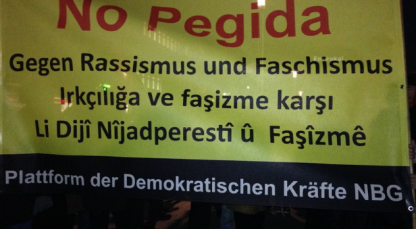 Nürnberg’de İnsan Hakları Caddesi’nde başlayan yürüyüşe Nürnberg Demokratik Güç Birliği bileşenlerinin yanı sıra çok sayıda demokratik kitle örgütü katıldı. 3 bini aşkın kişinin katıldığı eylemde Almanca, Türkçe ve Kürtçe „Irkçılığa ve faşizme karşı“ yazılı pankartın yanı sıra „No Pegida“ dövizleri taşındı.