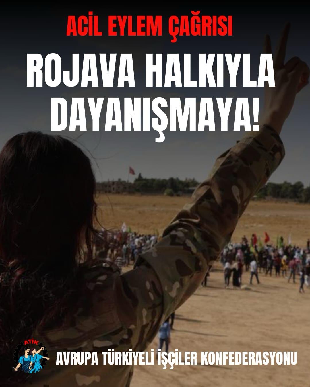 Eylemde Partizan, Yeni Kadın, ATİK ve YDG, bayraklarıyla yer aldı. Yapılan konuşmalarda bu kurumların Rojava halkıyla dayanışma içinde olduğu ve mücadelenin birlikte büyütüldüğü vurgulandı.