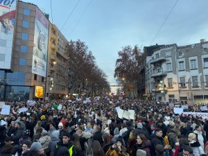 HABER MERKEZİ|23.12.2024| Belgrad’da on binlerce kişi, Cumhurbaşkanı Aleksandar Vučić’in otoriter yönetimine karşı düzenlenen protestolarda bir araya geldi. İşçiler, öğrenciler ve antifaşist grupların yoğun katılımıyla gerçekleşen eylemde sosyal adaletsizlik, yolsuzluk ve devlet baskısı protesto edildi.