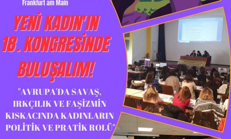 Yeni Kadın, 18. Merkezi Kongre’de kadınların ortak sorunlarına yönelik ortak mücadele başlıklarının tartışılacağını, patriarkal kapitalizme karşı kadın mücadelesinin güçlendirilmesinin hedeflendiğini bildirdi.